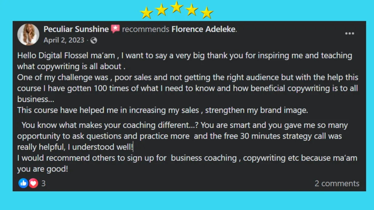 Florence Adeleke is a Multi-dimensional strategic business growth consultant. The founder of Digital Flossie Global Limited. She currently serves as the Chair for Marketing and Communications at Blacks In technology foundation, a global tech enthusaiat community with over 43,000 members globally. She currently runs an MBA in Marketing at NEXT MBA, a global leading MBA institution.